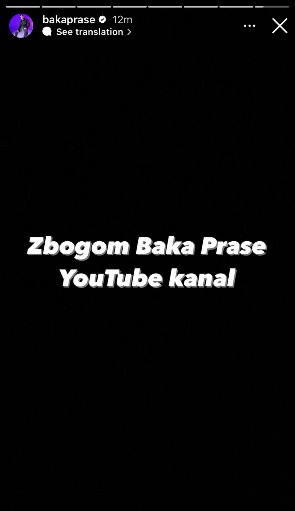 "Zbogom Baka Prase youtube kanal", napisao je kratko na svom prvom storiju, a onda je objavio i drugi: