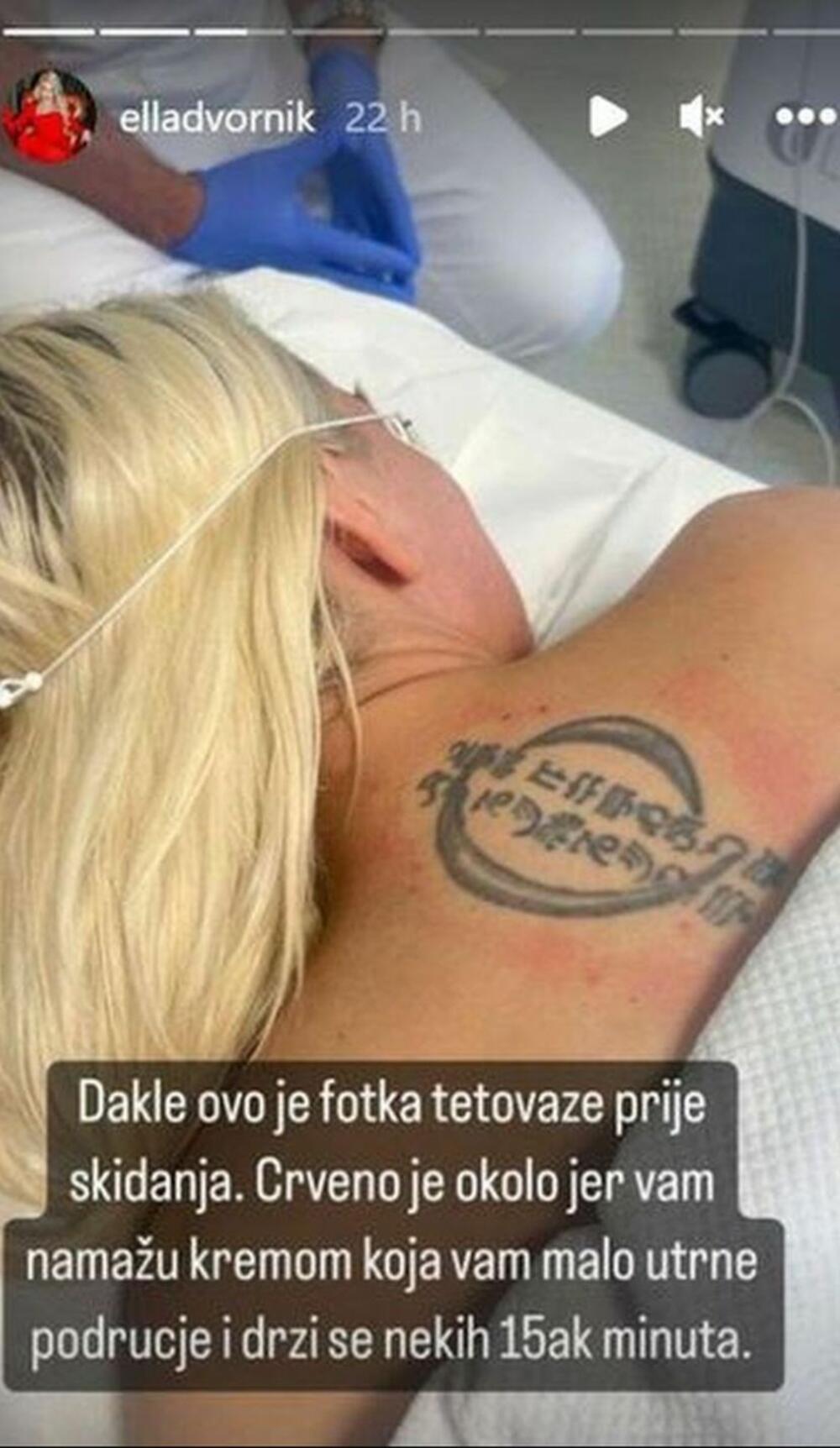 – Dakle, ovo je tetovaža pre skidanja. Crveno je okolo jer vam namažu kremom koja vam malo utrne područje i drži se nekih 15-ak minuta… Bol je 10/10, neću vas lagati pa da me tamo psujete kada budete skidali - napisala je ona u jednom storiju.