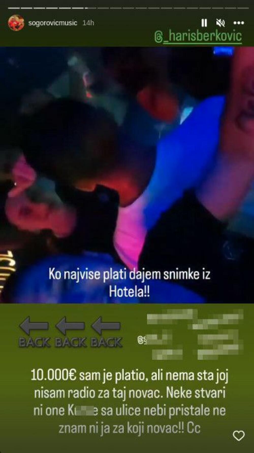- Ko najviše plati, dajem snimak iz hotela. 10.000 evra sam je platio, ali nema stvari šta joj nisam radio za taj novac - napisao je, između ostalog, ovaj "mangup".