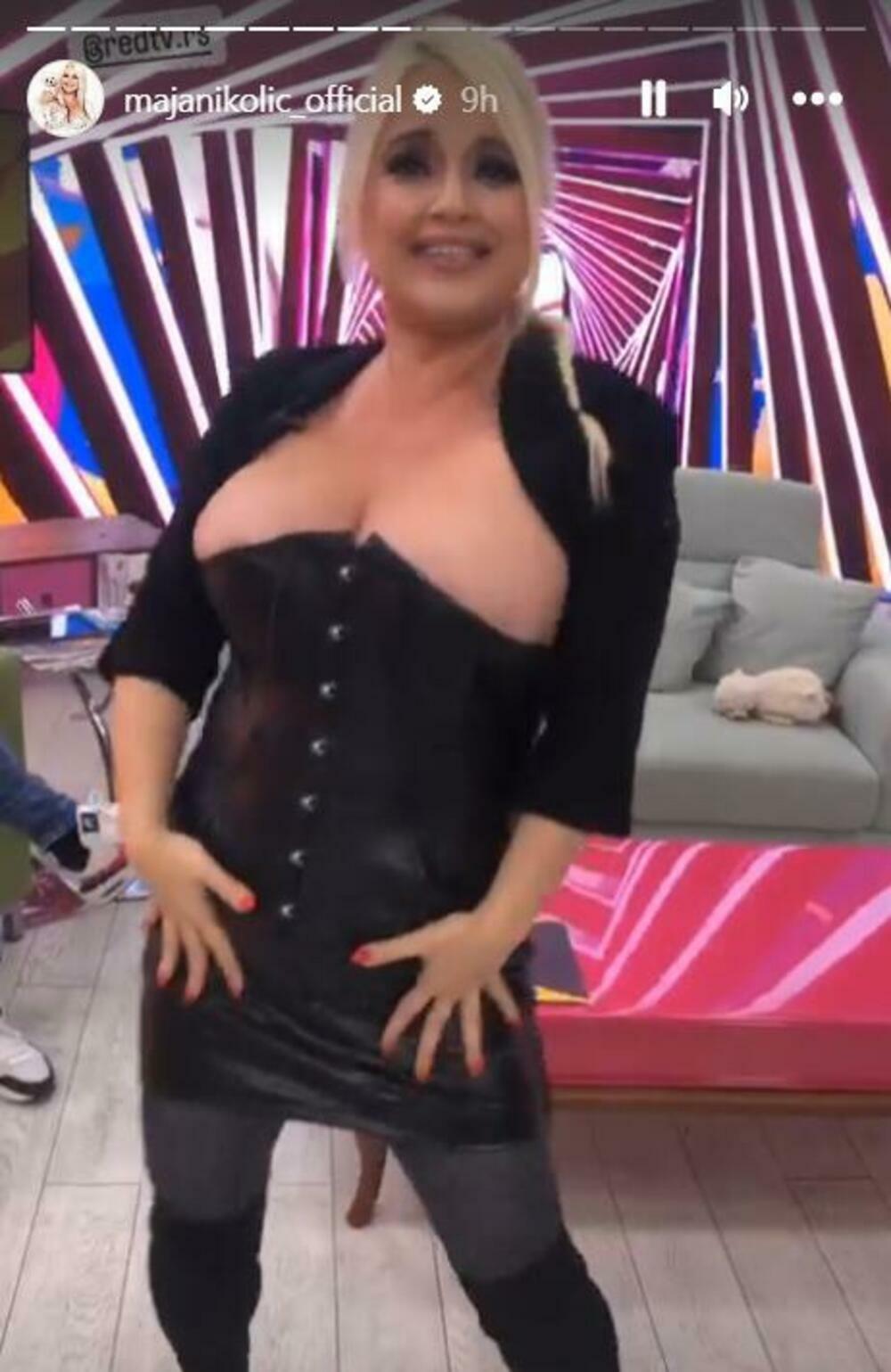 Maja se spremala za nekoliko emisija u kojima se pojavila u izdanju koje je šokiralo mnoge. Naime, pevačicine grudi jedva su stale u maleni korset, pa su se "prelivale" preko.