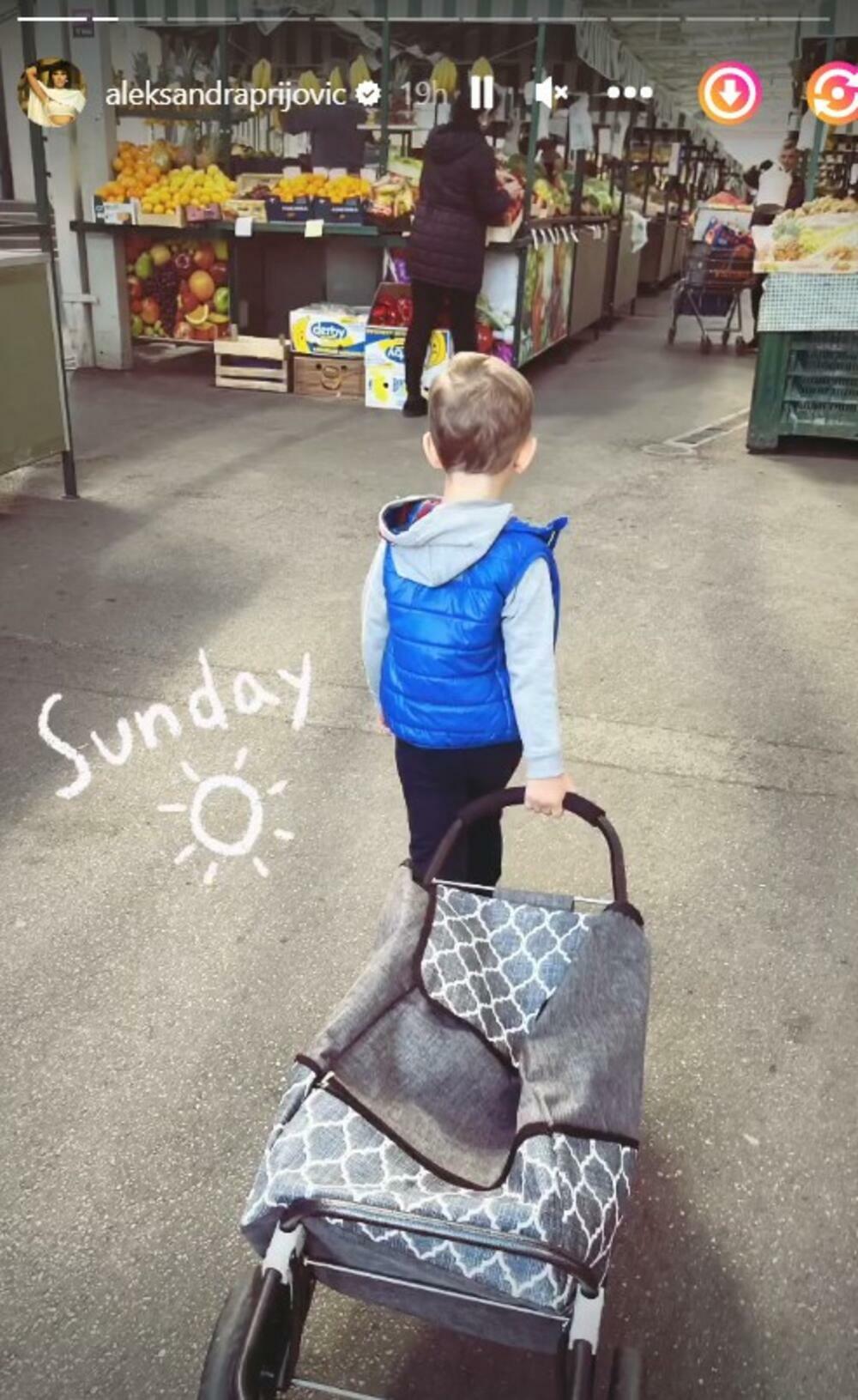 Aleksandra je izašla sa naslednikom na pijacu, pa je iskoristila priliku da ga fotografiše dok vuče vreću za namirnice.