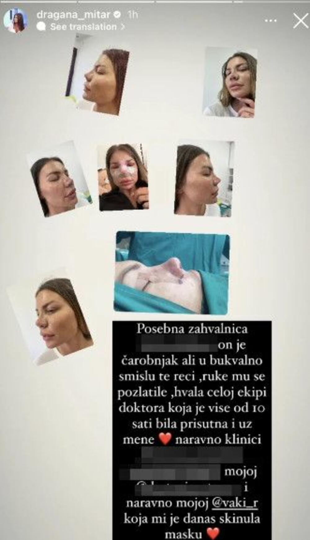 Naime, Dragana je sve objavila na društvenoj mreži Instagram, a kako je često bila tema domaćih medija upravo zbog korigovanja nosa, sada je istakla da joj je ovo poslednja operacija.