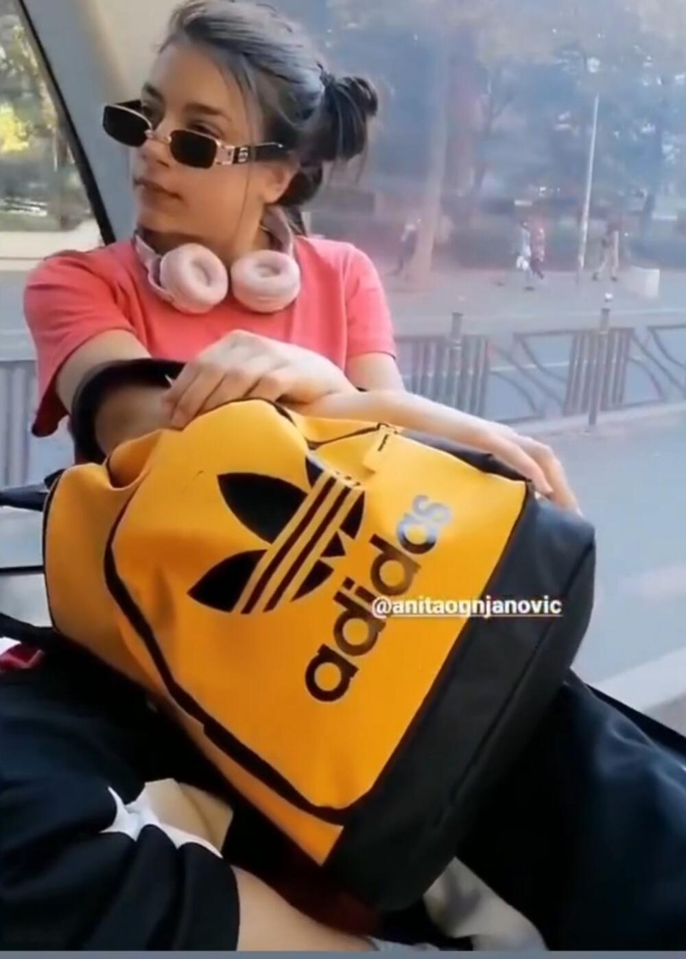 Ona je u tim trenucima držala ranac, a slušalice oko glave su očigledno u pripravnosti ako mlada glumica poželi da posluša neku pesmu dok ne stigne do željene destinacije.