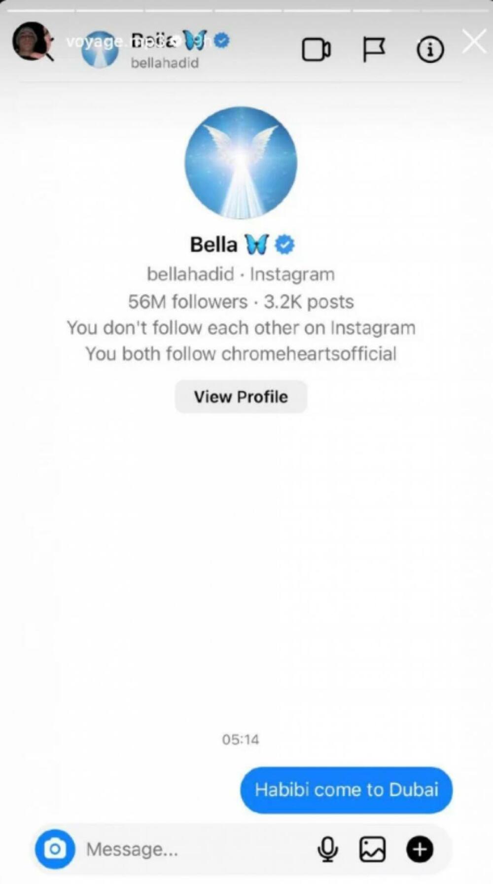Mihailo Veruović, poznatiji kao Vojaž, objavio je na svom Instagram profilu skrinšot prepiske sa planetarno popularnom manekenkom Belom Hadid.
