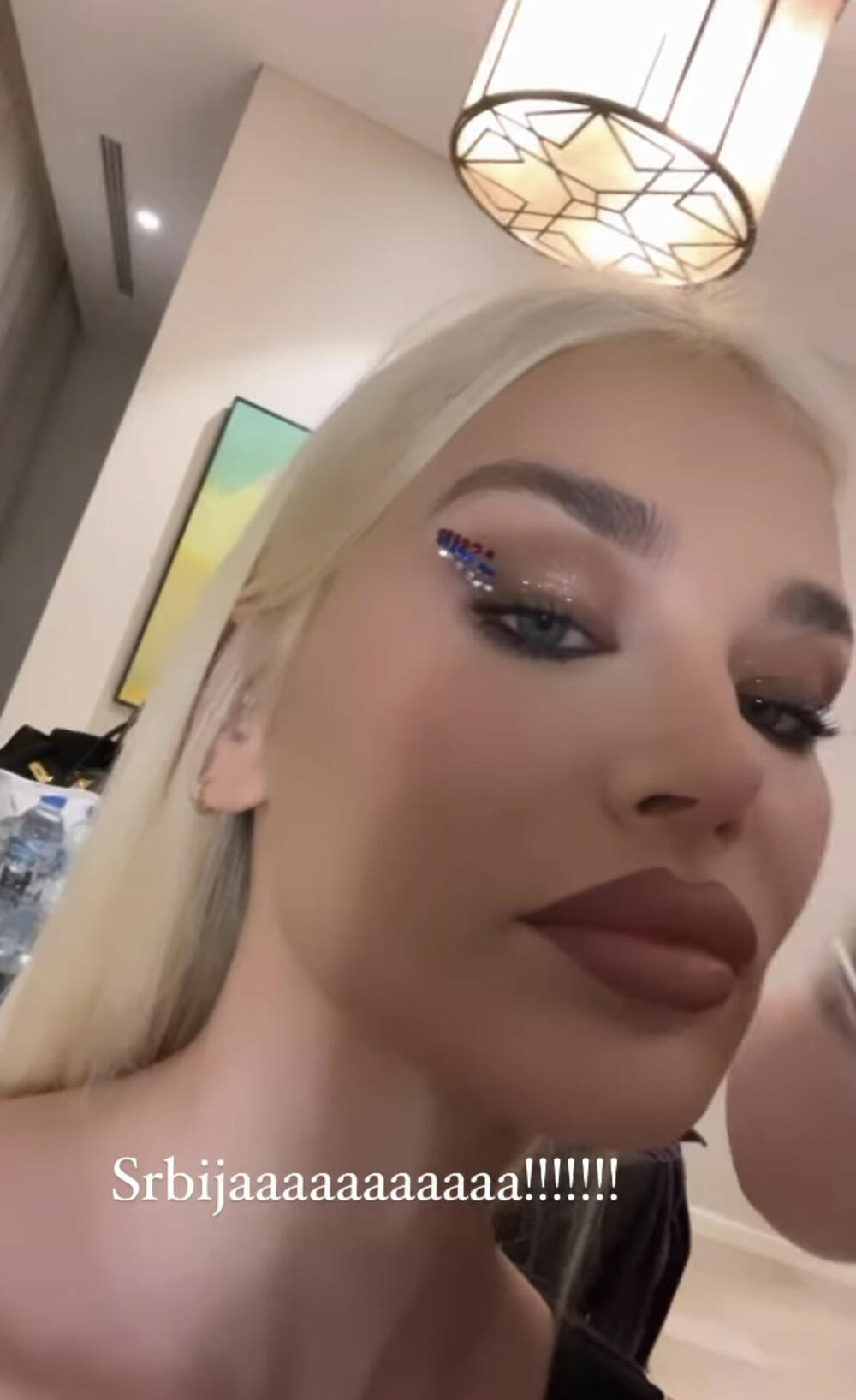 Za ovu priliku ona je odabrala poseban 'makeup', te je od cirkona napravila našu zastavu u uglu oka.