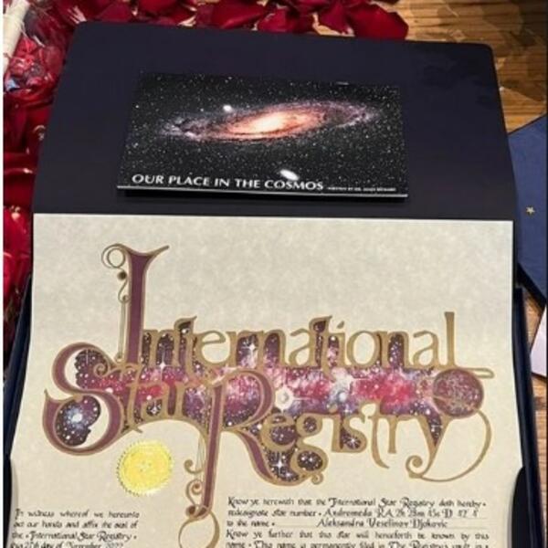 Među poklonima se našla i ukrasna boca sa porukom, čiji sadržaj nije htela da otkriva svojim pratiocima, kao i makete zvezde na nebu sa njenim imenom.