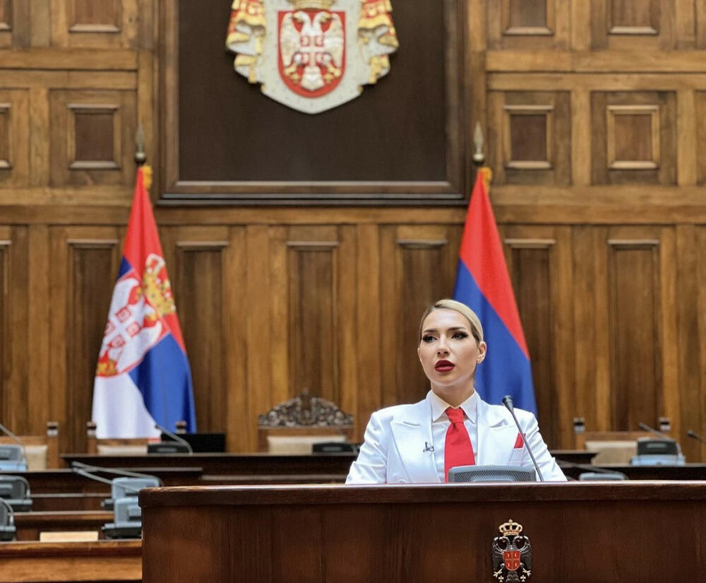 Jovana je nosila belo odelo, belu košulju i crvenu kravatu, zbog čega su komentari samo pljuštali. Šminka je takođe bila u bojama naše zastave.