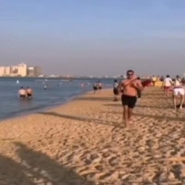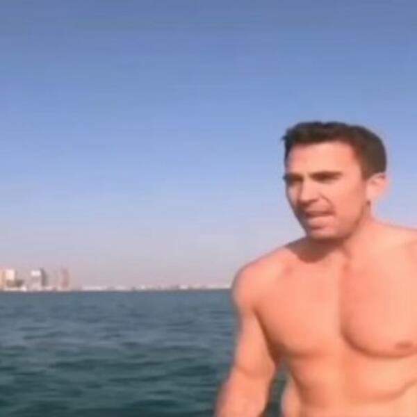 U prilogu koji je prikazan u emisiji "Biser pustinje" imali smo priliku i da vidimo razgolićenog Popovića, koji kao zvezda serije "Čuvari plaže" skače u vodu.