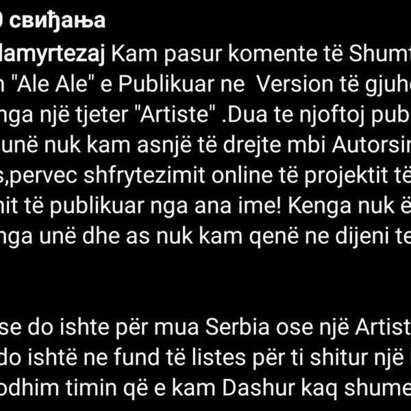 Ipak, senku na ovu numeru bacila je činjenica da je u pitanju obrada albanske pesme pod istim nazivom, koju u originalu izvodi pevačica Džensila, jedna od tamošnjih najvećih zvezda, a objavila ju je na svom Jutjub kanalu krajem aprila ove godine.