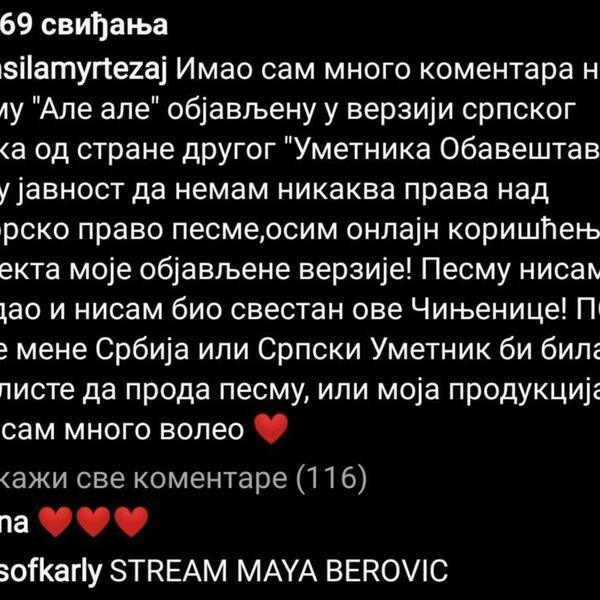 Podsetimo, nakon što se u javnosti pojavila informacija da je ovaj singl albanska obrada i da ju je Berovićka ukrala, oglasila se i sama Maja, koja je poručila sledeće: