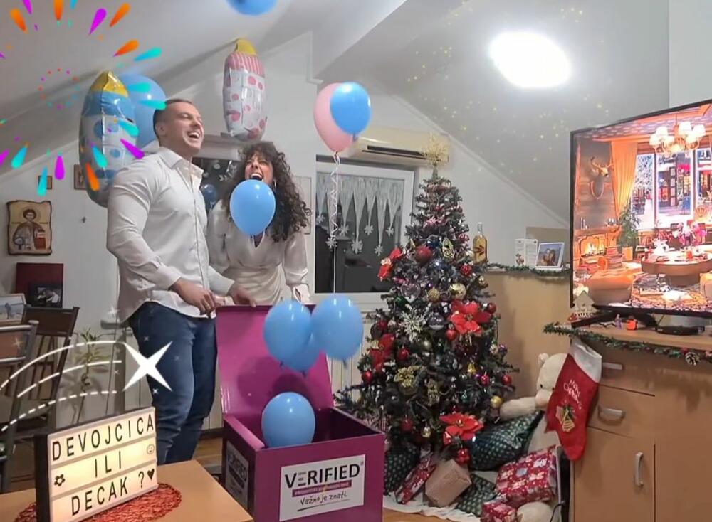 Iz kutije su izleteli plavi baloni, pa je budući deda poentirao:
