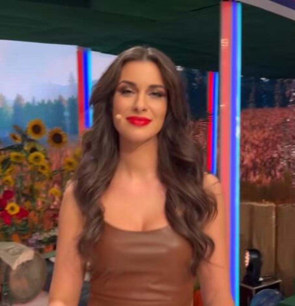 Naime, ona se pojavila u spektakularnoj kožnoj haljini dubokog dekoltea. Mnogi su prokomentarisali da je ona izgledala kao prava domino dama. Haljina je bila na bretele, a otkrivala je bujne grudi lepe voditeljke.