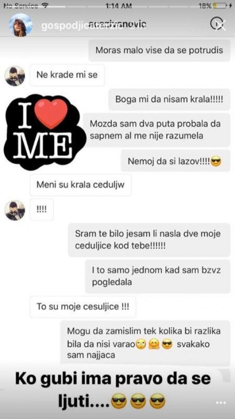 Na Instagram profilu Maše Terzić je osvanula fotografija prepiske sa pevačem Acom Živanovićem.