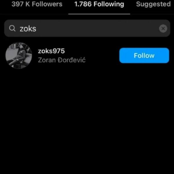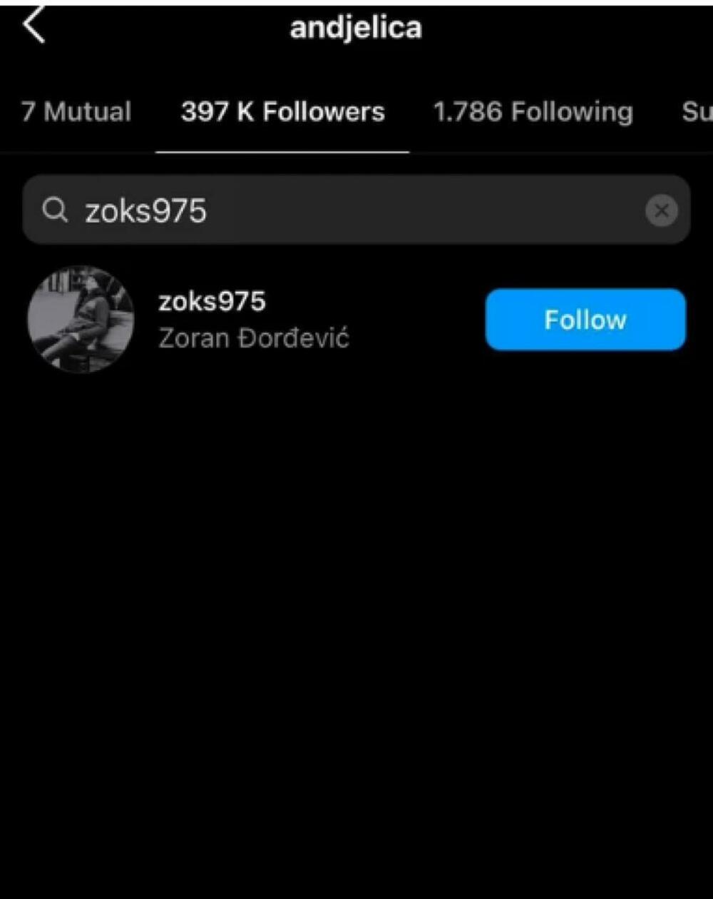 Na društvenoj meži Instagram Zoran prati Anđelu, kao i ona njega, ali suprugu i Nađu ne prati, kao ni one njega.