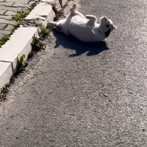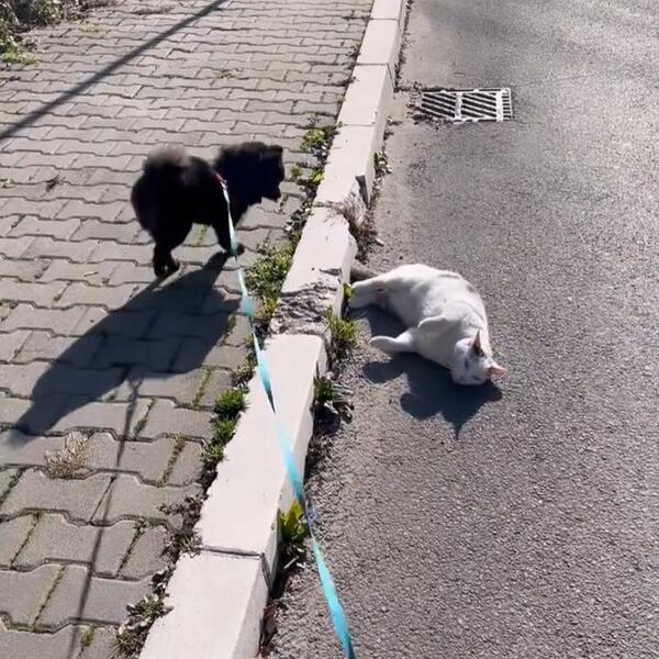 Pevačica se sve vreme obraćala mačku Cican, koji je slobodno šetao po ulici, dok su psi bili na povocu.