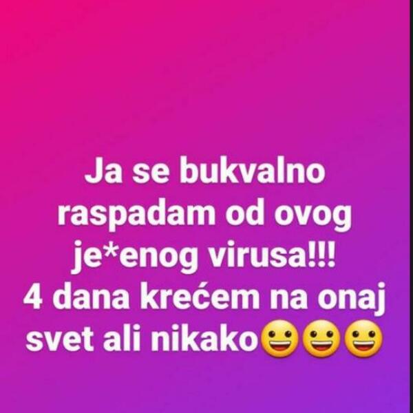 - Ja se bukvalno raspadam od ovog j*benog virusa! Četiri dana krećem na onaj svet, ali nikako - napisao je Milan, a danas je dodao: