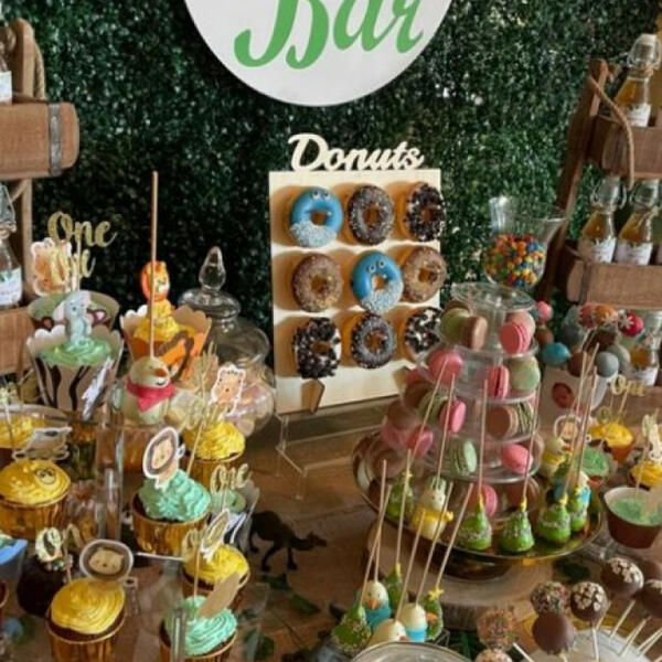 Tu su baloni u zelenoj, zlatnoj i beloj boji, mnoštvo slatkiša, krofinica, ali i razne sitnice sa ispisanim imenom Lav.