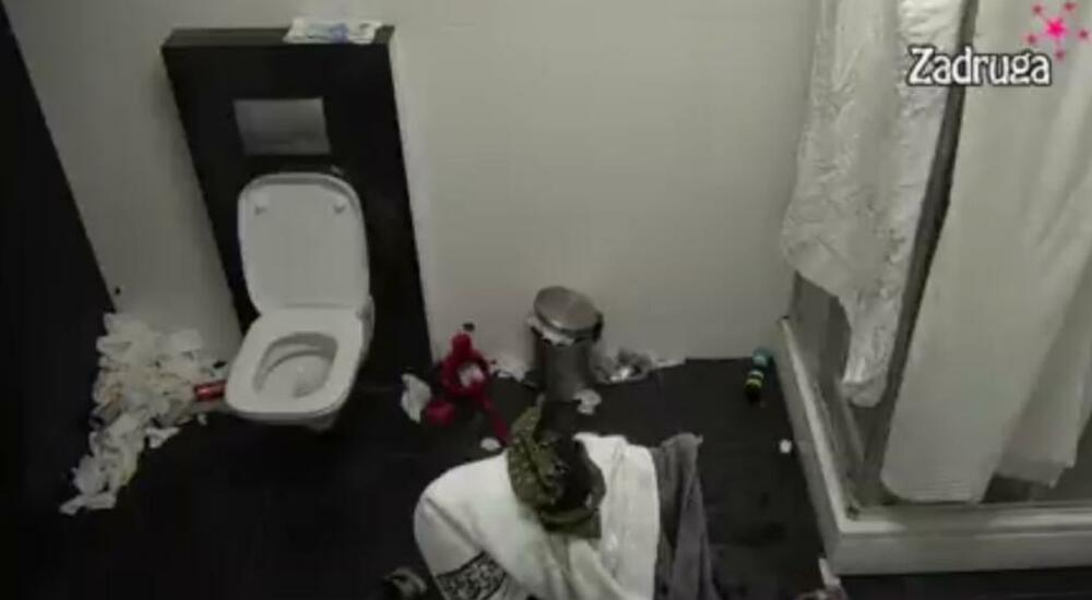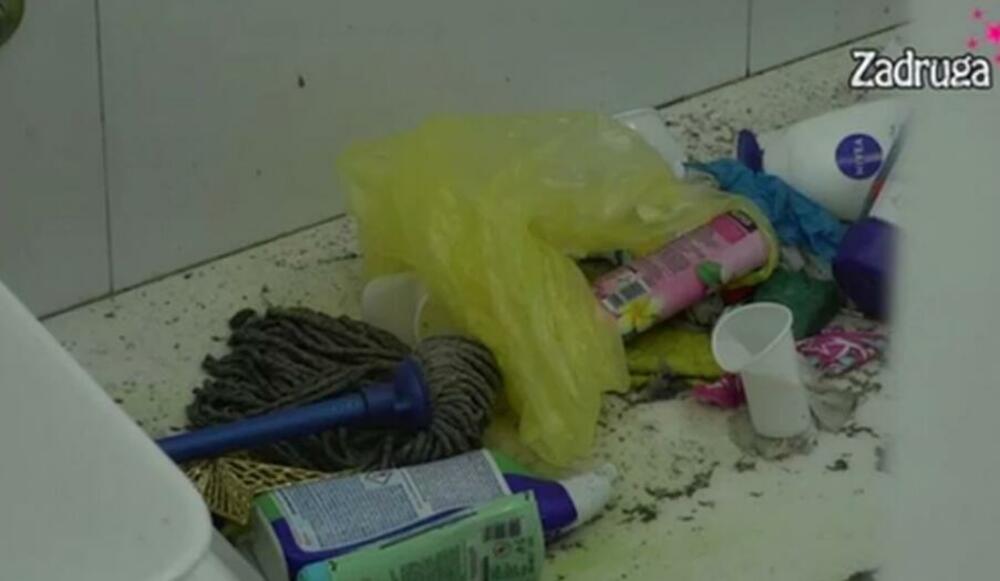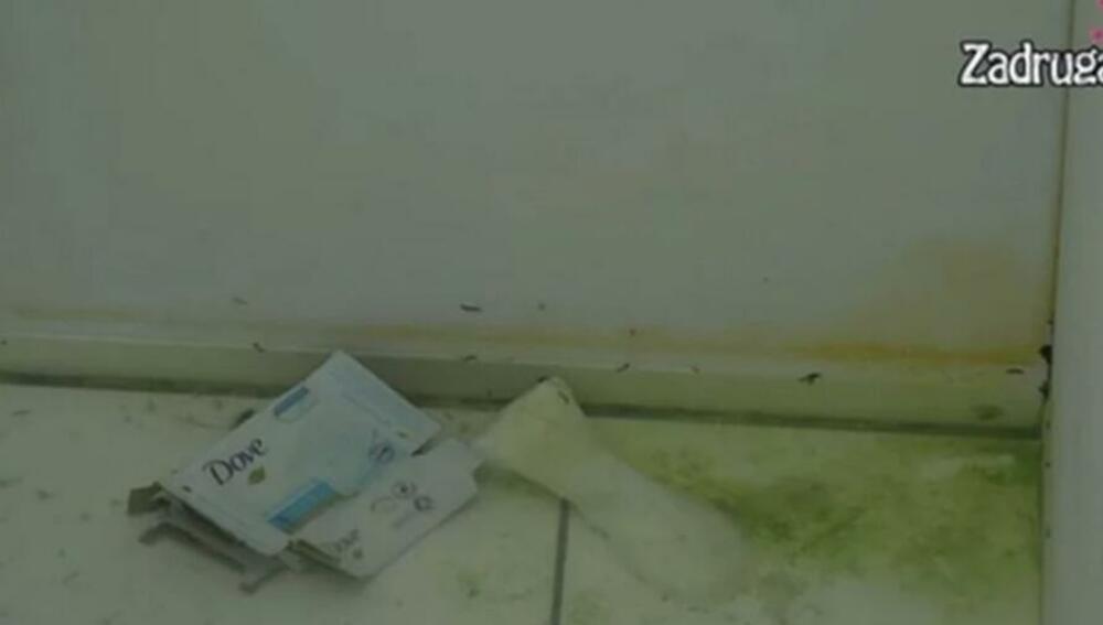 Limenke i ambalaže razbacane su svuda su po podu, kao i prljava odeća zadrugara oko tuš kabine.