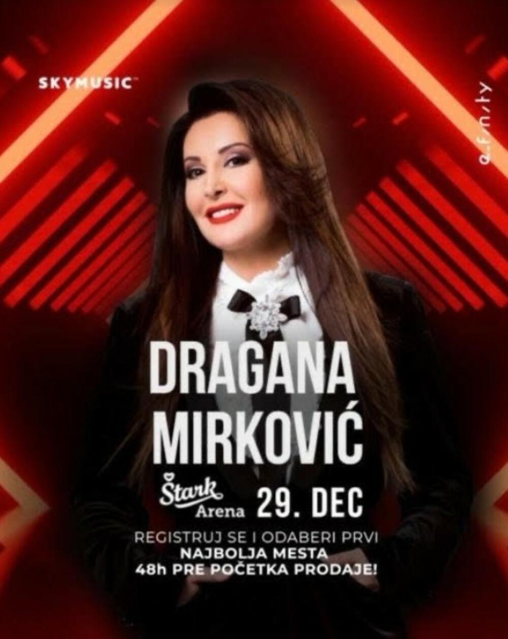 Mega zvezda folk muzike Dragana Mirković odlučila je da četiri decenije karijere obeleži velikom regionalnom turnejom koju će otpočeti 29. decembra muzičkim spektaklom u Štark areni.