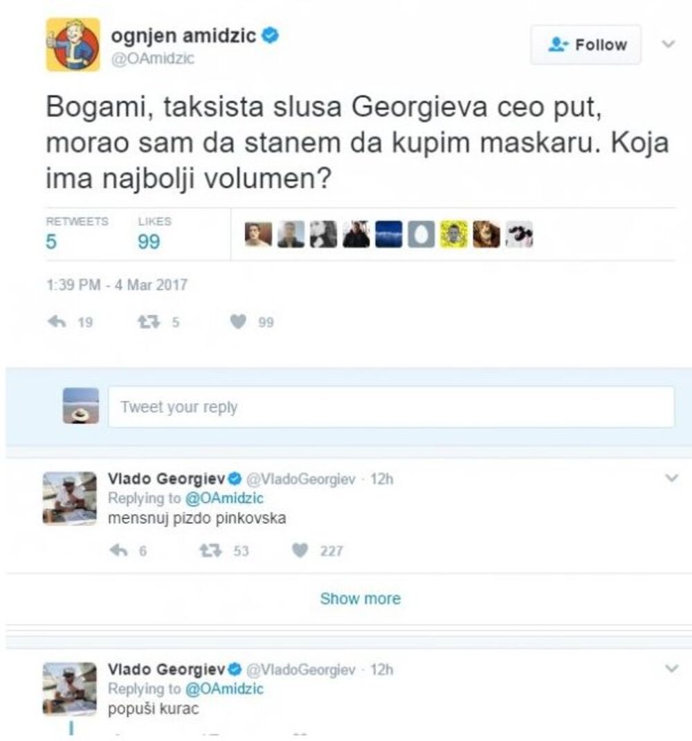 Voditelj Ognjen Amidžić i pevač Vlado Georgiev započeli su pre dva dana novi medijski rat na estradi i isprozivali se na Tviteru.