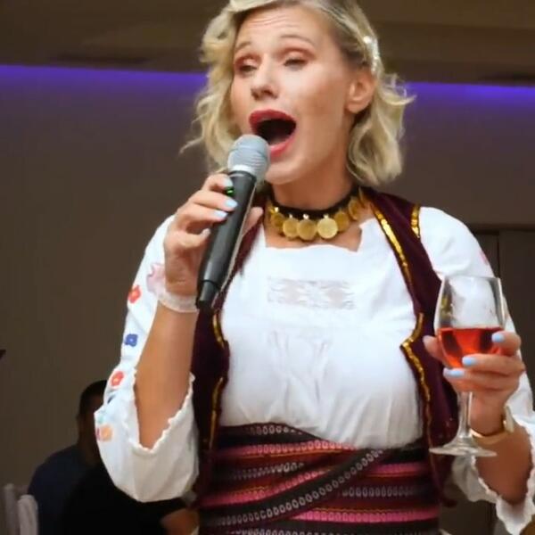 Voditeljka je u jednom trenutku obukla čak i narodnu nošnju, a sve kako bi se uklopila u deo programa svadbe kada je igralo kulturno-umetničko društvo.