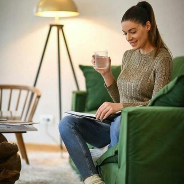 Dnevni boravak je ispunjenim biljkama koje unose svežinu u prostor, a pažnju nam je privukla i zelena garnitura.