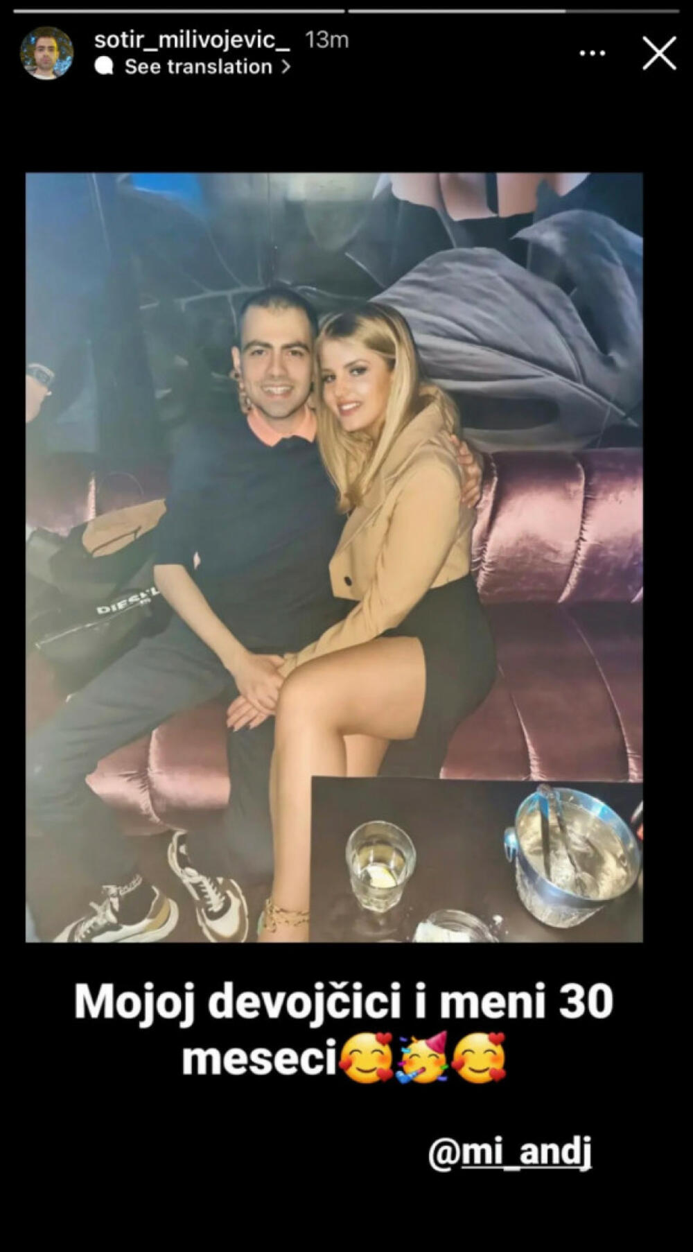Ovaj značajni jubilej obeležio je fotografijom iz izlaska sa svojom izabranicom, napisavši „Mojoj devojčici i meni 30 meseci veze“.