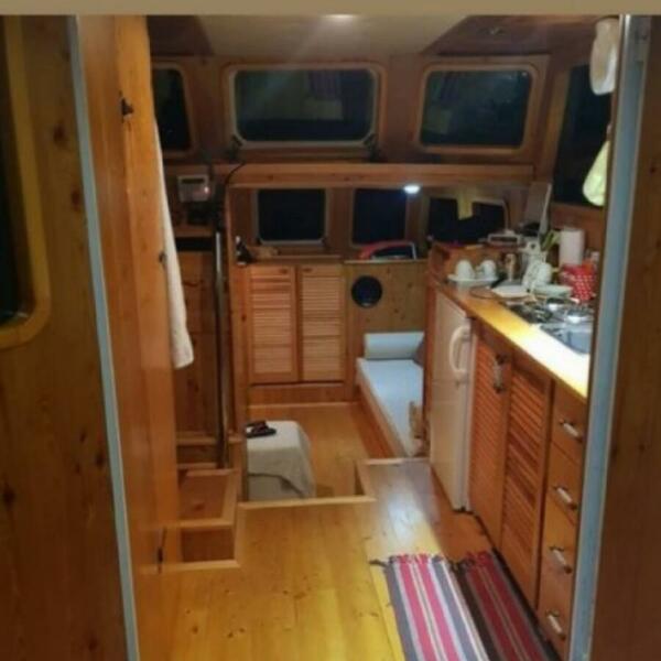 U kabini broda se nalazi kuhinja, zatim dva kreveta za odmor, kao i sto za ručavanje koji je izrđen od najfinijeg drveta.