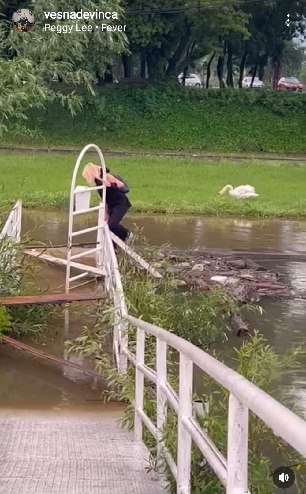 Vesna se spremila i krenula na jedan modni događaj, ali kako je otvorila vrata svoje kuće na vodi, sve je bilo poplavljeno. Brzo je sve pozatvarala, a kako bi izašla na obalu morala je da se vere po metalnoj ogradi.