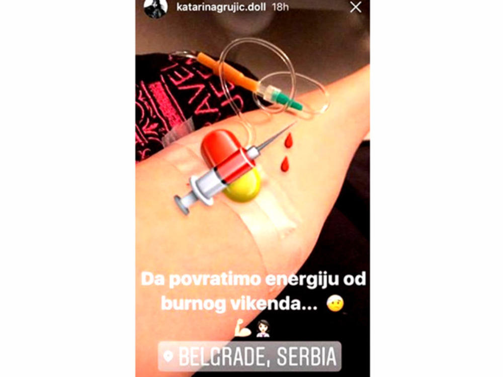 - Da povratimo energiju od burnog vikenda - napisala je pevačica uz fotografiju na kojoj se vidi kako je prikačena na infuziju.