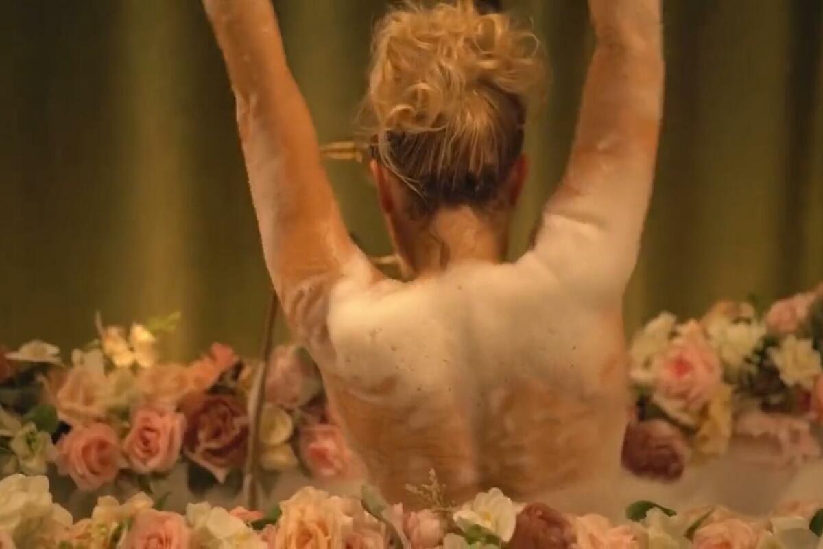 U spotu ćemo je videti u kadi sa penušavom kupkom i cvećem, kako jaše konja, vozi se helikopterom, šeta pored klavira u izazovnoj, crvenoj haljini, ali i da ne nosi brus!