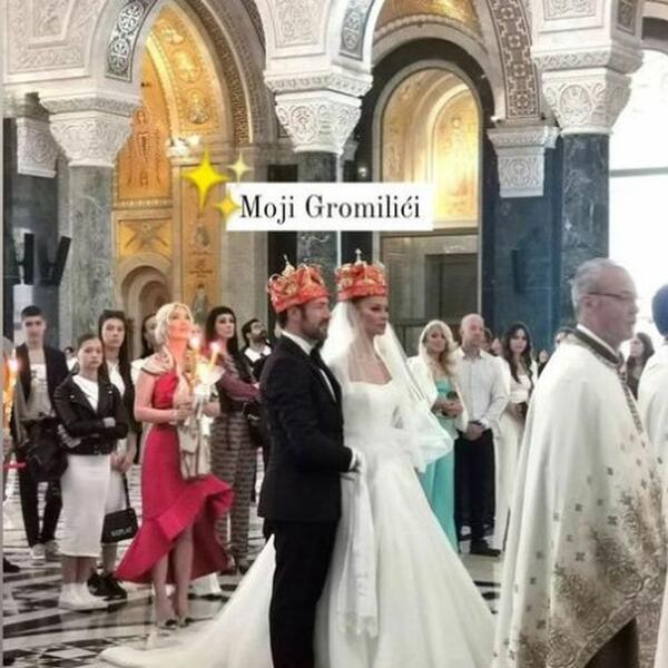 Na društvenim mrežama objavili su trenutke sa ceremonije. Mlada je bila u raskošnoj venčanici, sa dugačkim velom, a mladoženja se odlučio za jednostavno, crno odelo sa neobičnom leptir mašnom.