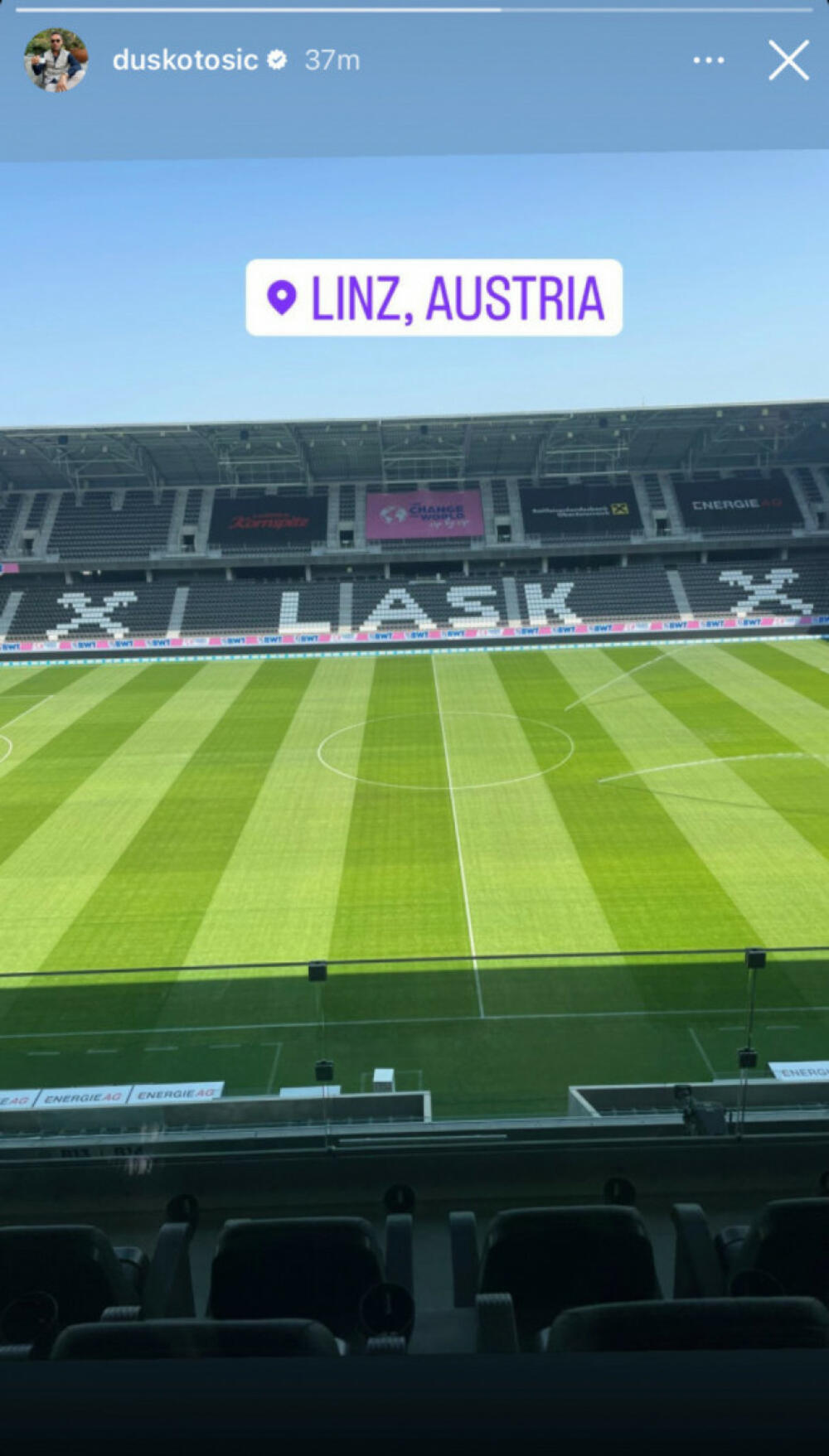 Ako je verovati Instagramu, u roku od dva dana Duško je stigao da obiđe dva evropska grada. Doduše, nisu daleko. Prvo je objavio da je u Budimpešti, da bi se dan kasnije našau u Lincu, na stadionu kluba “Lask”, člana austrijske “Bundeslige”.