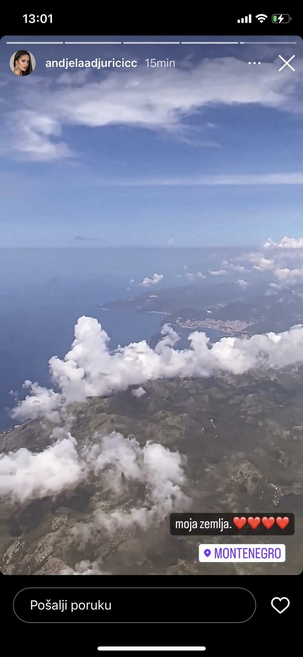 Ona je danas odletela do Crne Gore, a prvo je objavila fotke iz aviona u okviru kojih se divila njenoj državi.