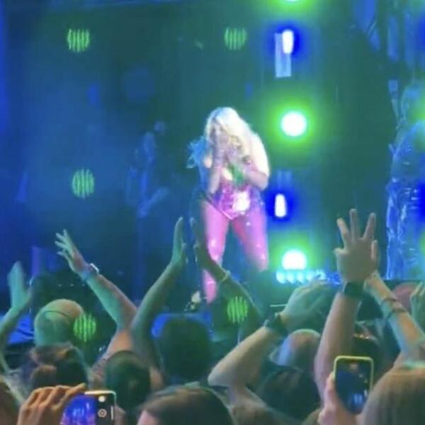 Momenat kada je pevačica pogođena telefonom zabeležen je kamerom i snimak je objavjen na Tviteru. Ona je navodno pre incidenta pokazala dvogalvog orla na bini.