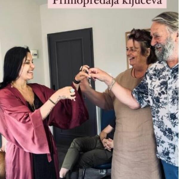 Elena se najpre zahvalila sinovima koji su joj velika podrška, a onda i nazdravila sa budućim komšijama i bivšim vlasinicima imanja koje je ona kupila.
