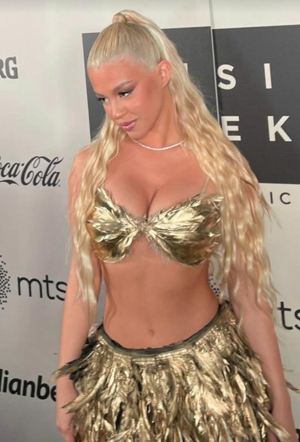 Ona je za Belgrade Music Week odabrala stajling koji je privukao pažnju svih prisutnih. Zlatne prešuke koje su prekivale njene bujne grudi.