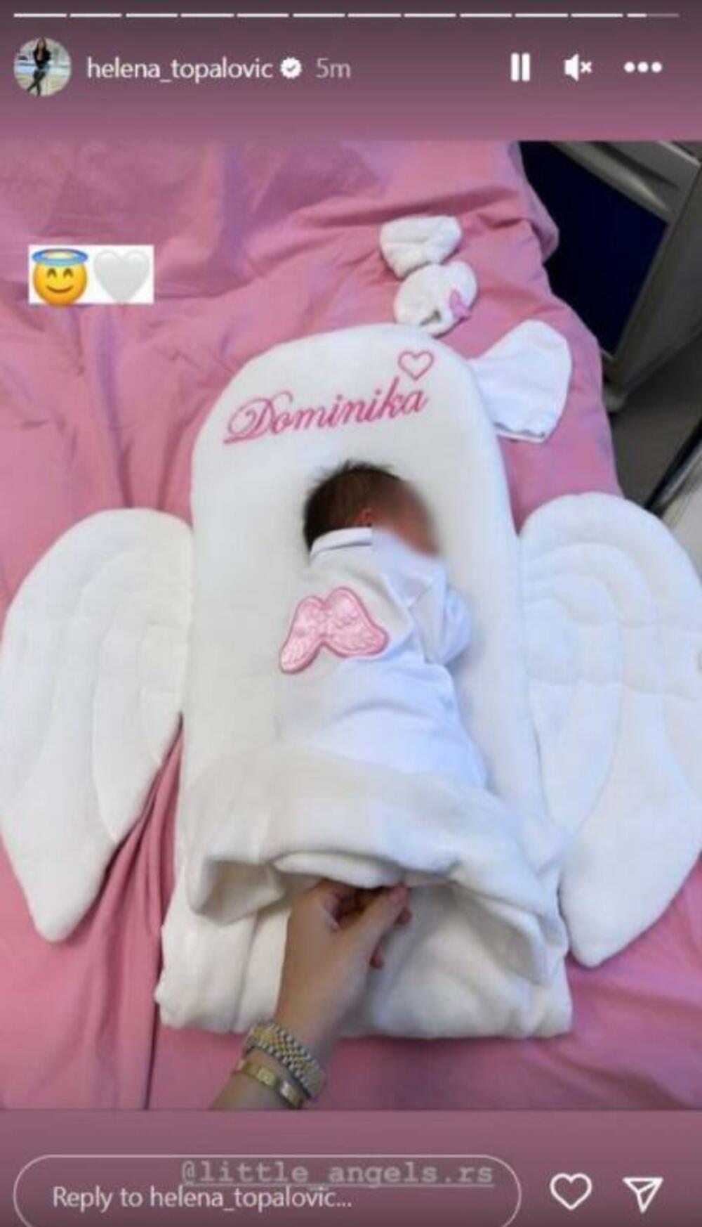 Mlada mama je skupila kosu i uplela kike, dok je Dominiku spakovala u nosiljku. Odmah po dolasku u velelepni stan, Helena je za svoju bebu pripremila i posebnu postelju u obliku anđela, na kojoj je ispisano Dominikino ime.