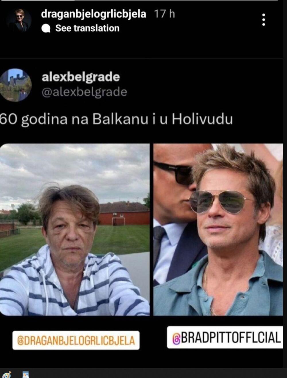 Društvenim mrežama se šeruje slika srpskog i američkog glumca koji su isto godište, uz potpis "60 godina na Balkanu i u Holivudu", koju je sada podelio i sam Bjela na svom Instagramu.