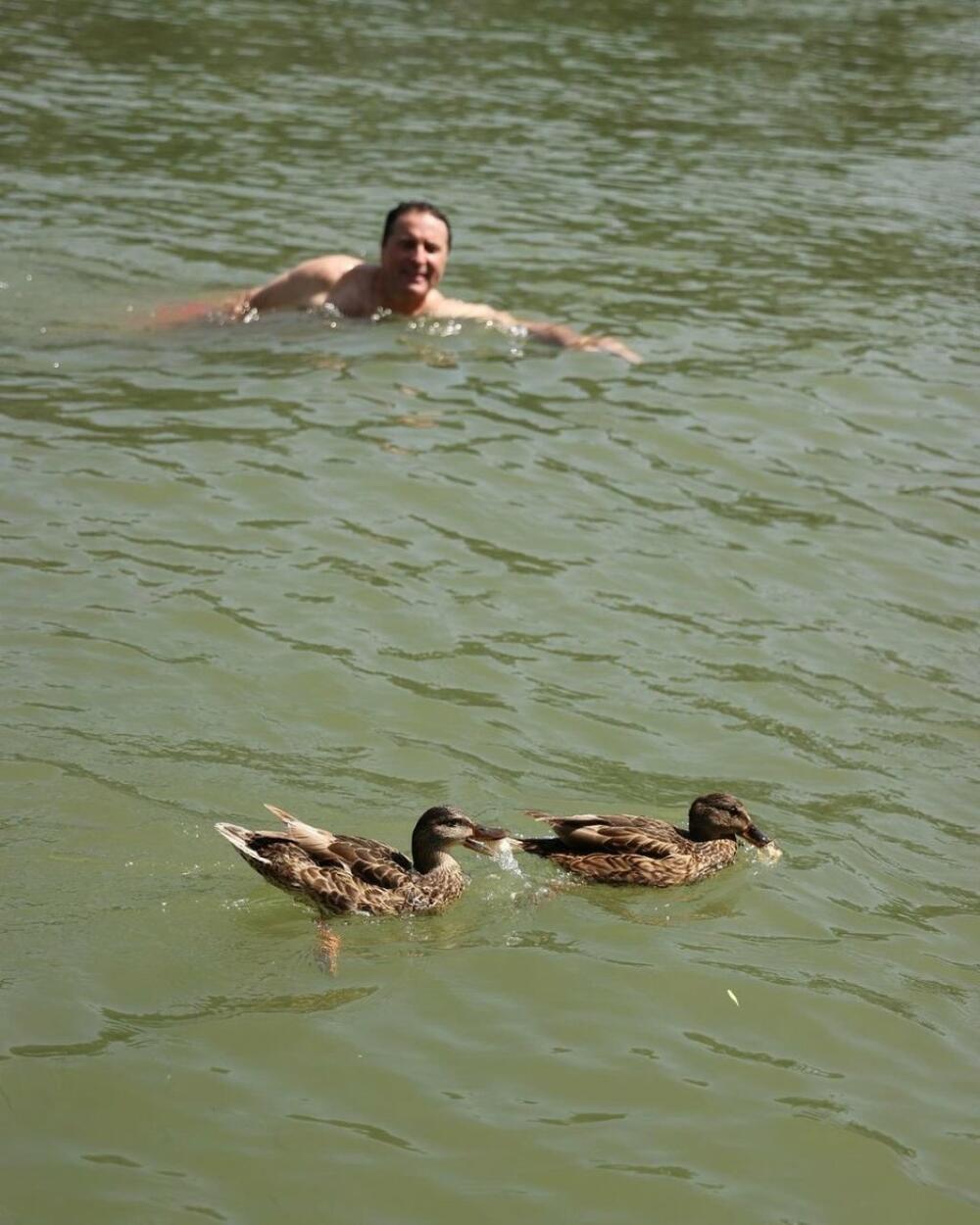 Voditelj je na Instagramu objavio nekoliko fotografija na kojima se prvo vidi kako se briše peškirom, a onda i kako se kupa u Savi dok oko njega plivaju patke.