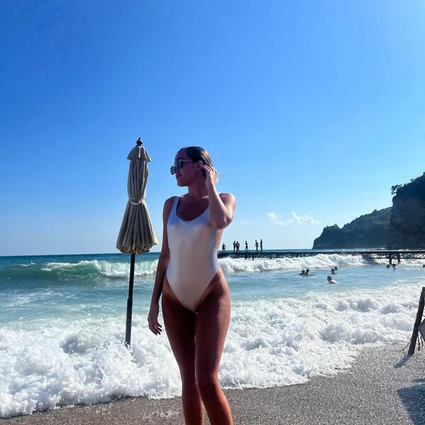 U kupaćem kostimu ova mlada dama izgleda više nego izazovno, a njen seksepil malo koji muškarac može da ostane ravnodušan.