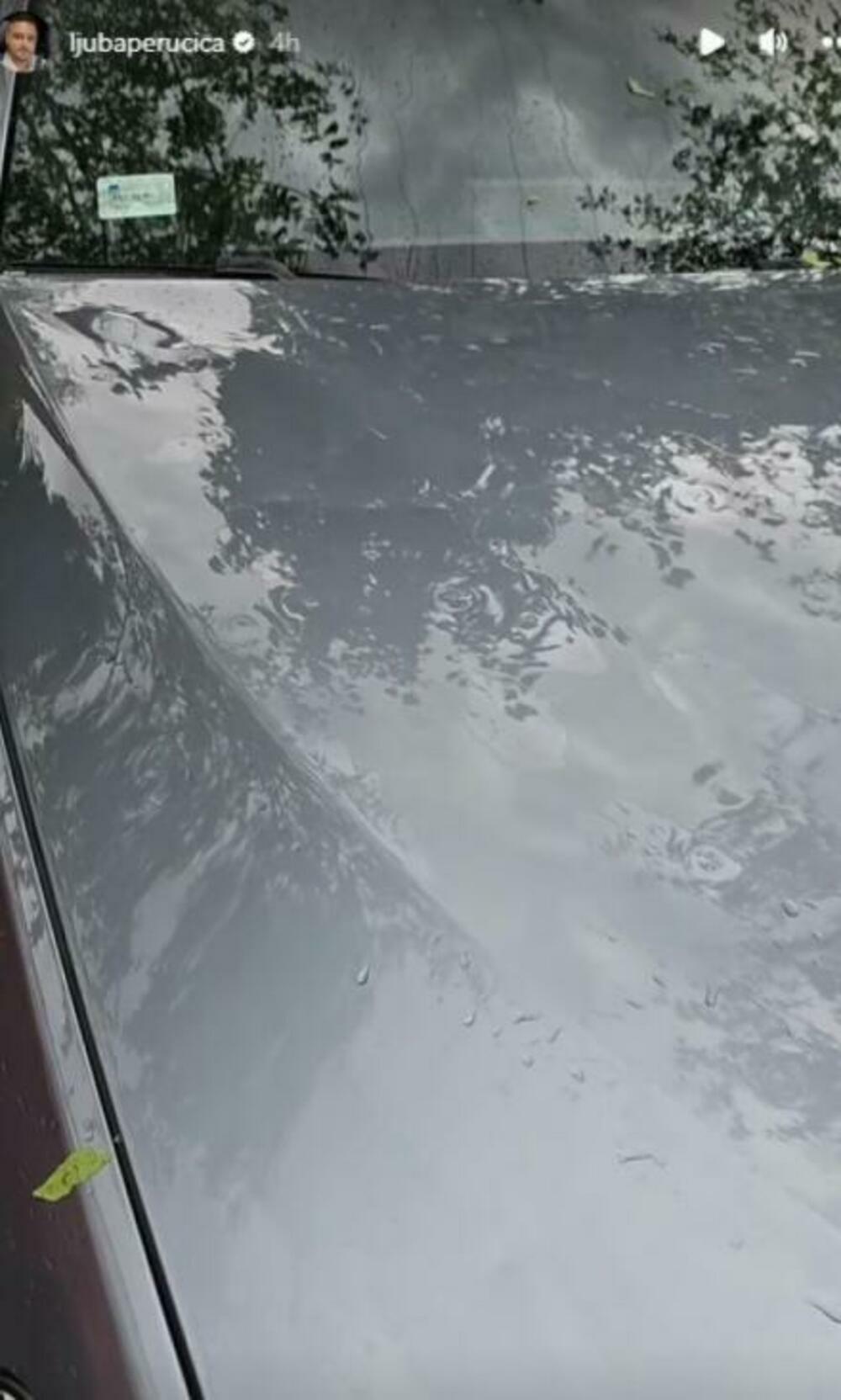 Pevač je, naime, pokazao da je grad uništio automobile njegove supruge i njegov, a na njima se mogu videti ulubljenja.