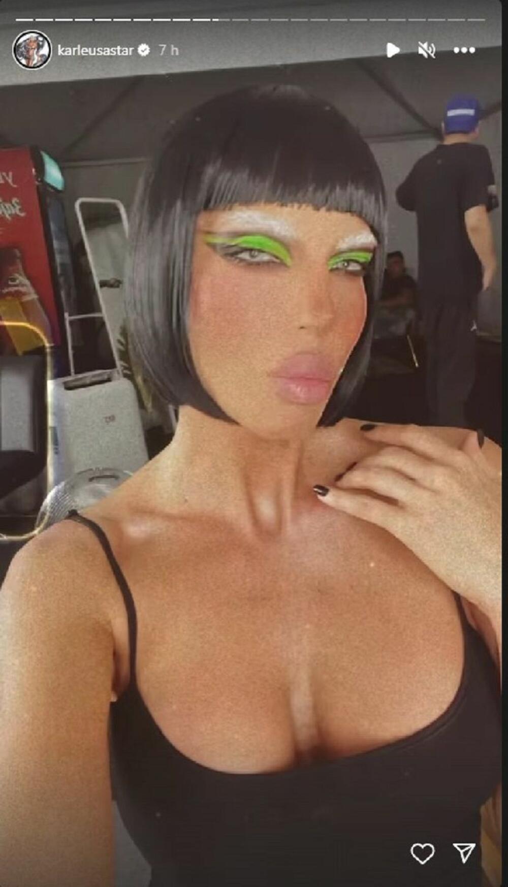 Pored toga, Jelena je pokazala i druge stajlinge u kojima se snimala i slikala, poput crnog veša od lateksa i čizama koje su joj do bokova. I tu je nosila sličnu periku fluorescentne boje, a oko nje su sev vreme bili saradnici koji su joj popravljali šminku i frizuru.