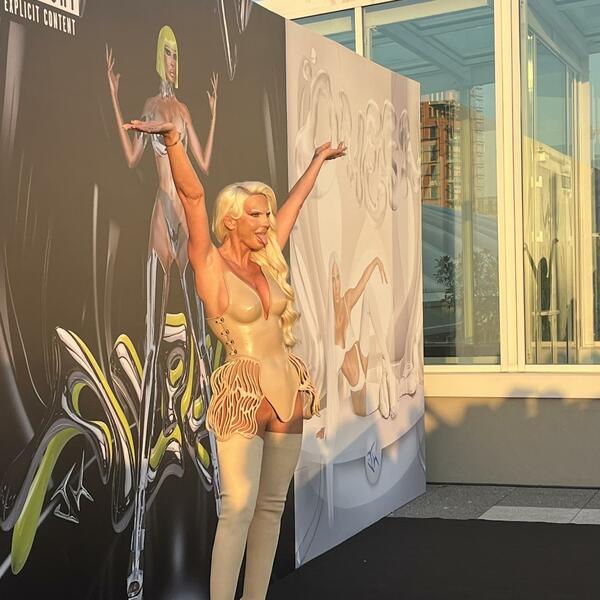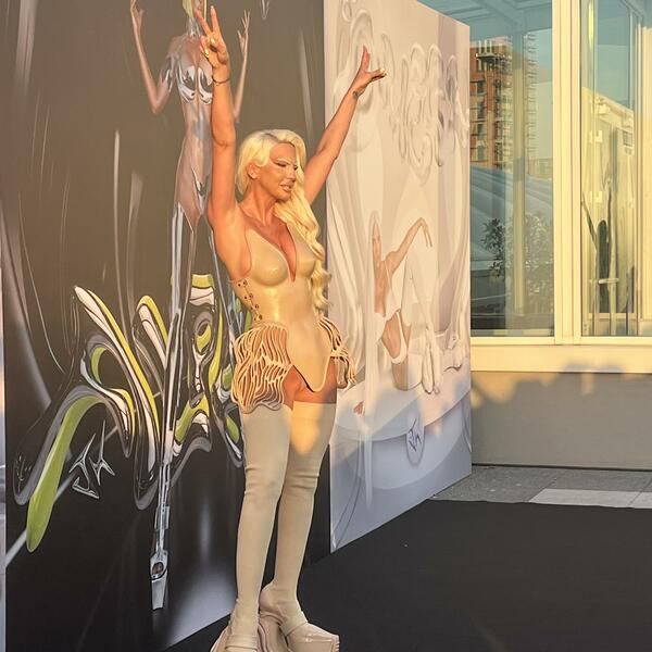 Pojavila se sa velikim unikatnim šeširom na glavi kao i futurističkim čizmama.