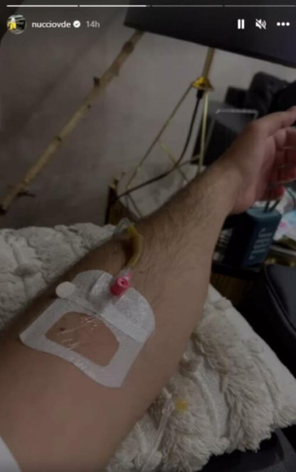 Naime, Nući se usnimio dok je primao infuziju i taj video-snimak podelio na društvenim mrežama. Poznato je da reper više puta nedeljno ima nastupa po različitim klubovima, zbog čega mu verovatno padne imunitet.