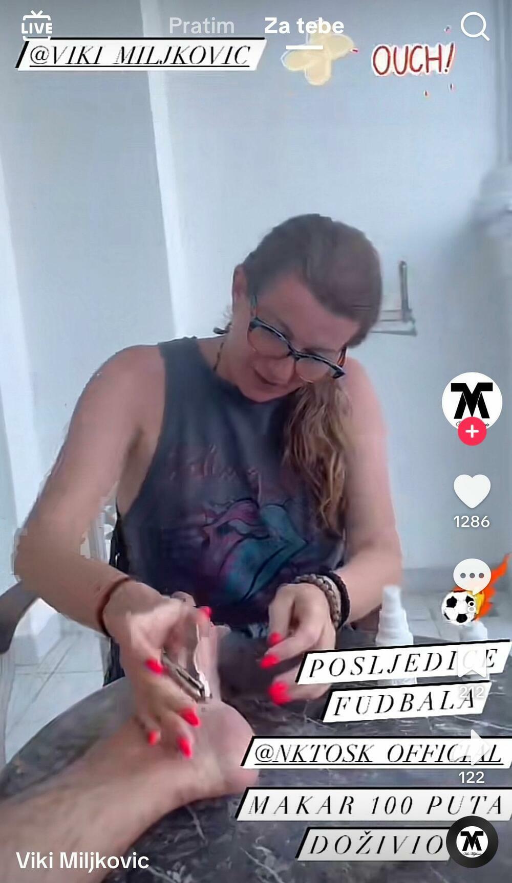 Pevačica je na svom TikToku postavila video na kome se vidi kako ona sa makazicama seče žuljeve na nogama Nerminu, koji ih je zaradio tokom fudbalske utakmice. Mladi pevač je sve to vreme snimao, a posebno je bio šokantan deo kad je živu ranu zumirao, pritom se sve vreme glasno smejući.