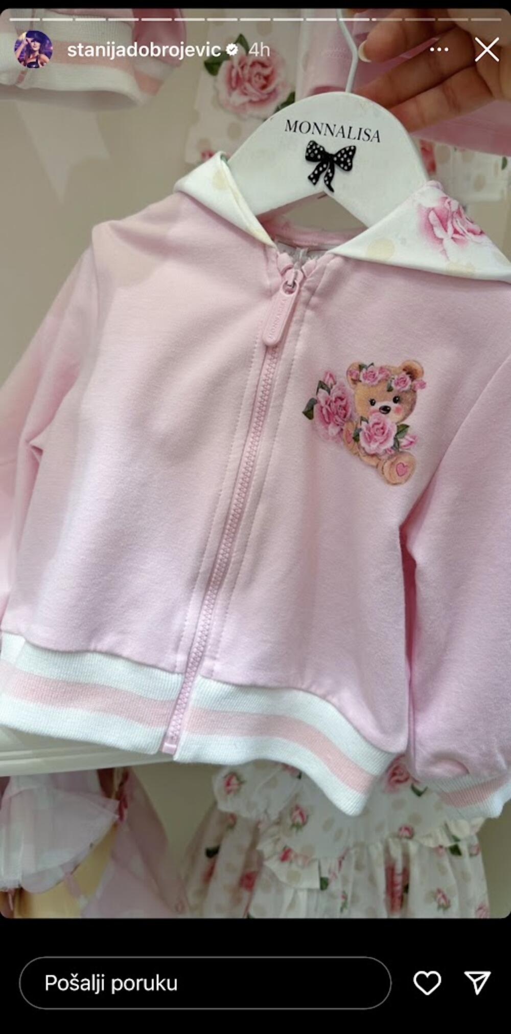 Na njenom profilu našle su se fotke ženske odeće za bebe, rože jaknica i bela haljinica, što je naišlo na brojna pitanja pratioca.