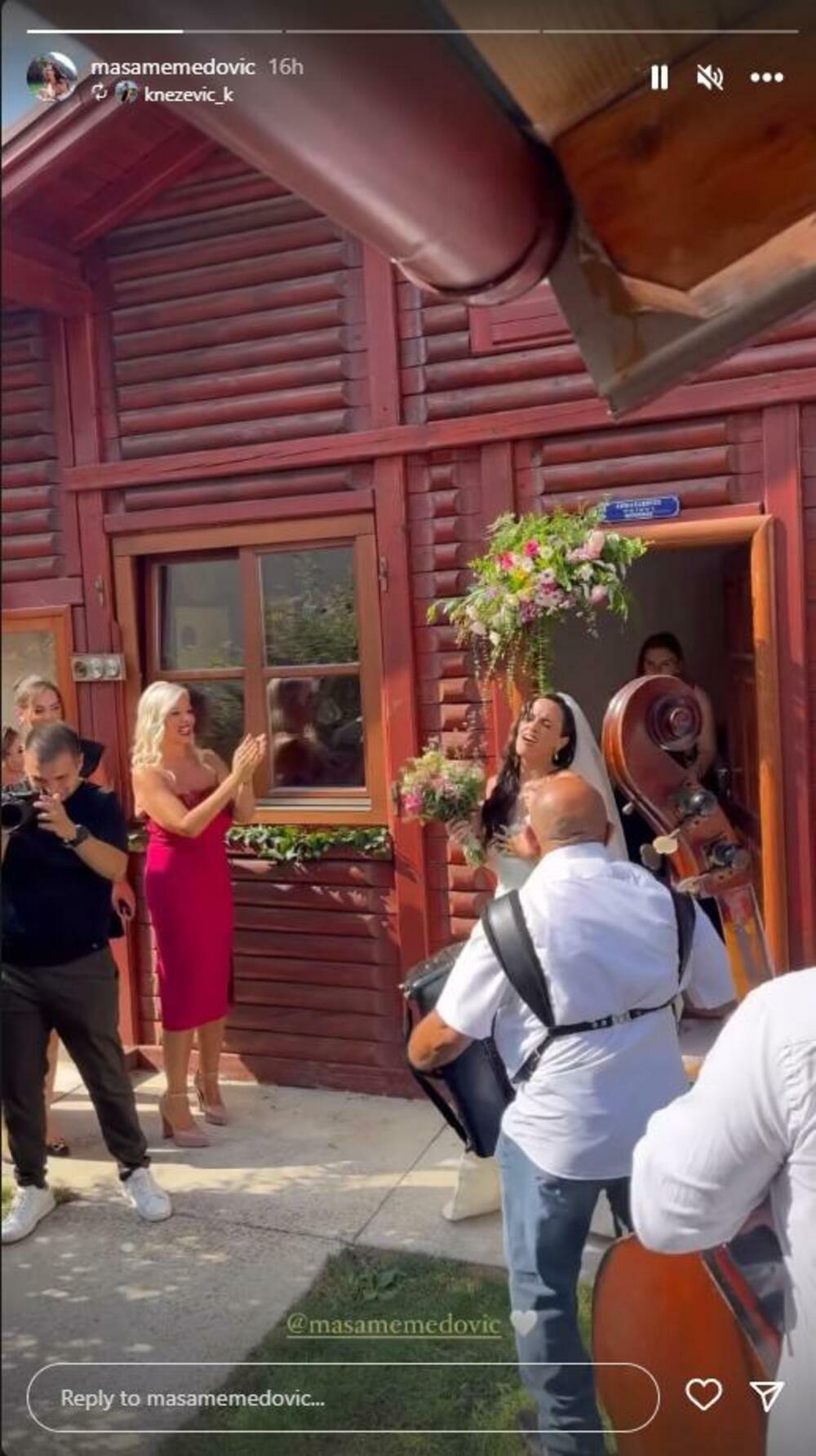 Mirjana je bila u crvenoj haljini, a osmeh nije skidala sa lica. Na jednom od snimaka, vidi se kako stoji sa strane dok Maša izlazi iz kuće.