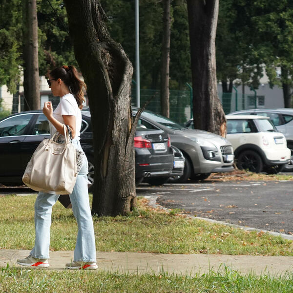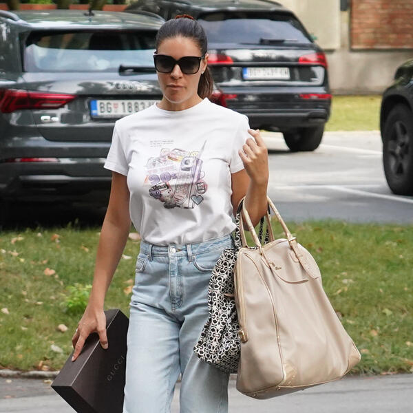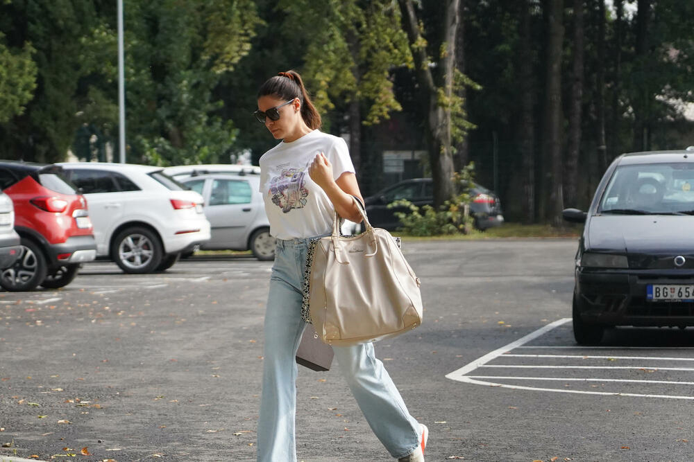 Sanja je nosila običnu majicu i široke farmerke, a na nogama je ravna obuća - sportske patike.