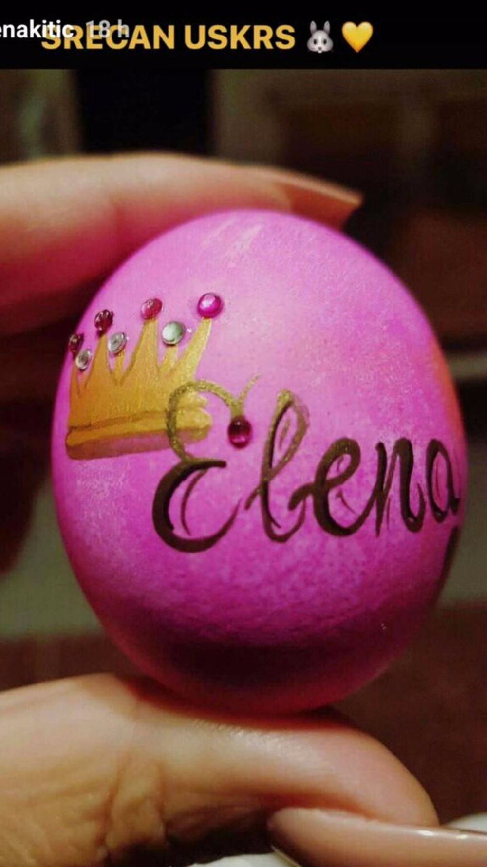 Elena se prvo na Instagramu pohvalila svojim ružičastim uskršnjim jajetom sa njenim imenom.